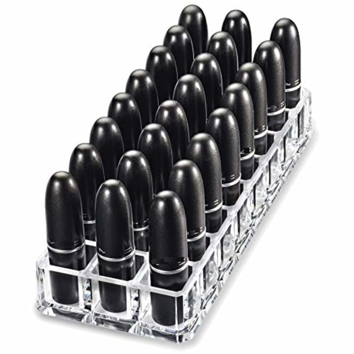If you're a lipstick fiend, and then yous tin can display your products in this acrylic organizer that holds 24 lipsticks. And if you have a rather substantial lipstick drove, byAlegory also sells two- and three-pack of lipstick organizers for more than storage space. These lipstick organizers received a 4.7-star average rating from about 960 reviews on Amazon and are bachelor in five colors, similar Pink Articulate and Blackness Articulate.